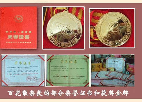 • 百花散榮獲中國優質名牌產品榮譽 百花散榮獲中國優質名牌產品榮譽