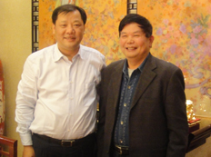 時任河南省人民政府省長郭庚茂先生(左)與臺州商會支部書記、《百花散》傳人梅安富先生合影